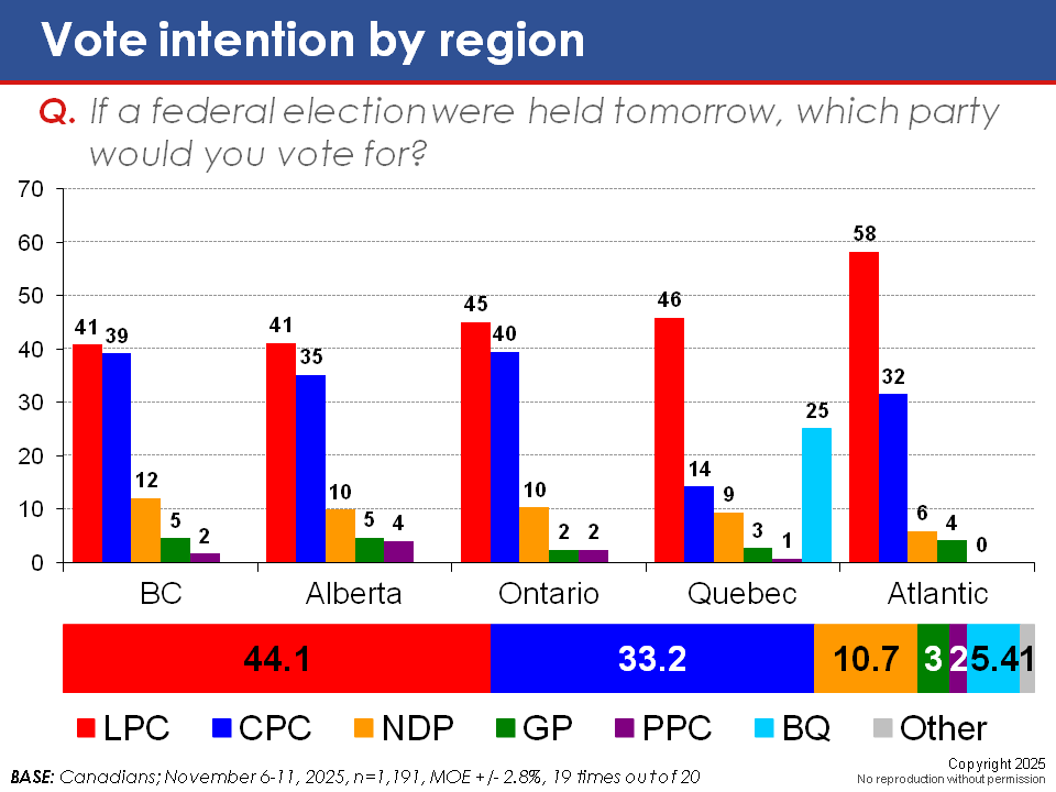 Ekos’s latest numbers but the Liberals ahead in every province in Canada, including Alberta (41 LPC to 35 CPC). This spells an obvious end to Poilievre’s leadership in January’s Conservative leadership review. This won’t leave the party headless: there is a keener who is ramping up his profile in an effort to capitalise on this failure: Bowmanville—Oshawa North MP Jamil Jivani, who replaced Erin O’Toole in a 2024 byelection. Canada’s Conservative media is getting behind him in a big way, with the National Post giving him a full-page spread on page 1 of this past Saturday’s paper.