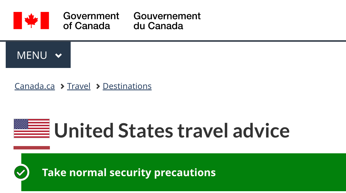 Yet the government of Canada’s official advice for those considering travel to the United States reads: “take normal security precautions” — as if everything really is normal.