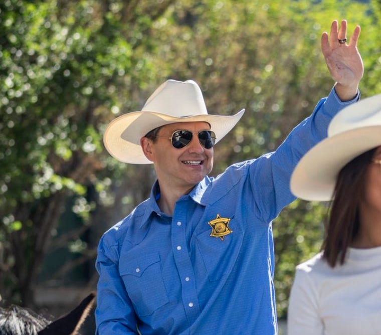 Poilievre’s own candidacy is a comedy in its own right, with him posting this utterly bizarre picture of himself wearing a kid’s toy police badge at the Calgary Stampede. The badge appears to be this one, handed out by the Calgary Police Service to children.